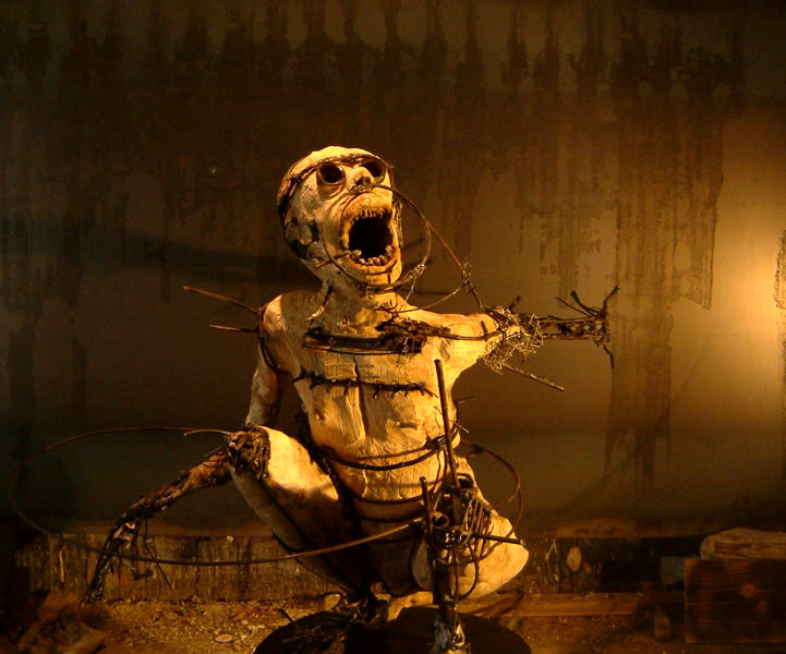 Depuis 15 ans, Olivier de Sagazan se consacre totalement aux arts plastiques, peintures, sculptures et performances. Il expose régulièrement dans une dizaine de galeries en France et en Belgique. Galerie Vitoux Paris IVème, Galerie Duchoze à Rouen, Galerie Crid’art à Metz, Sordini à Marseille, etc. Son travail s’articule autour de la question du corps, corps primitif, golem, androïde, cyborg. La question demeure toujours d’en découdre avec l’humaine condition. Ouvrir la carcasse, faire parler le corps, essayer par tous les moyens de lui arracher son mystère.